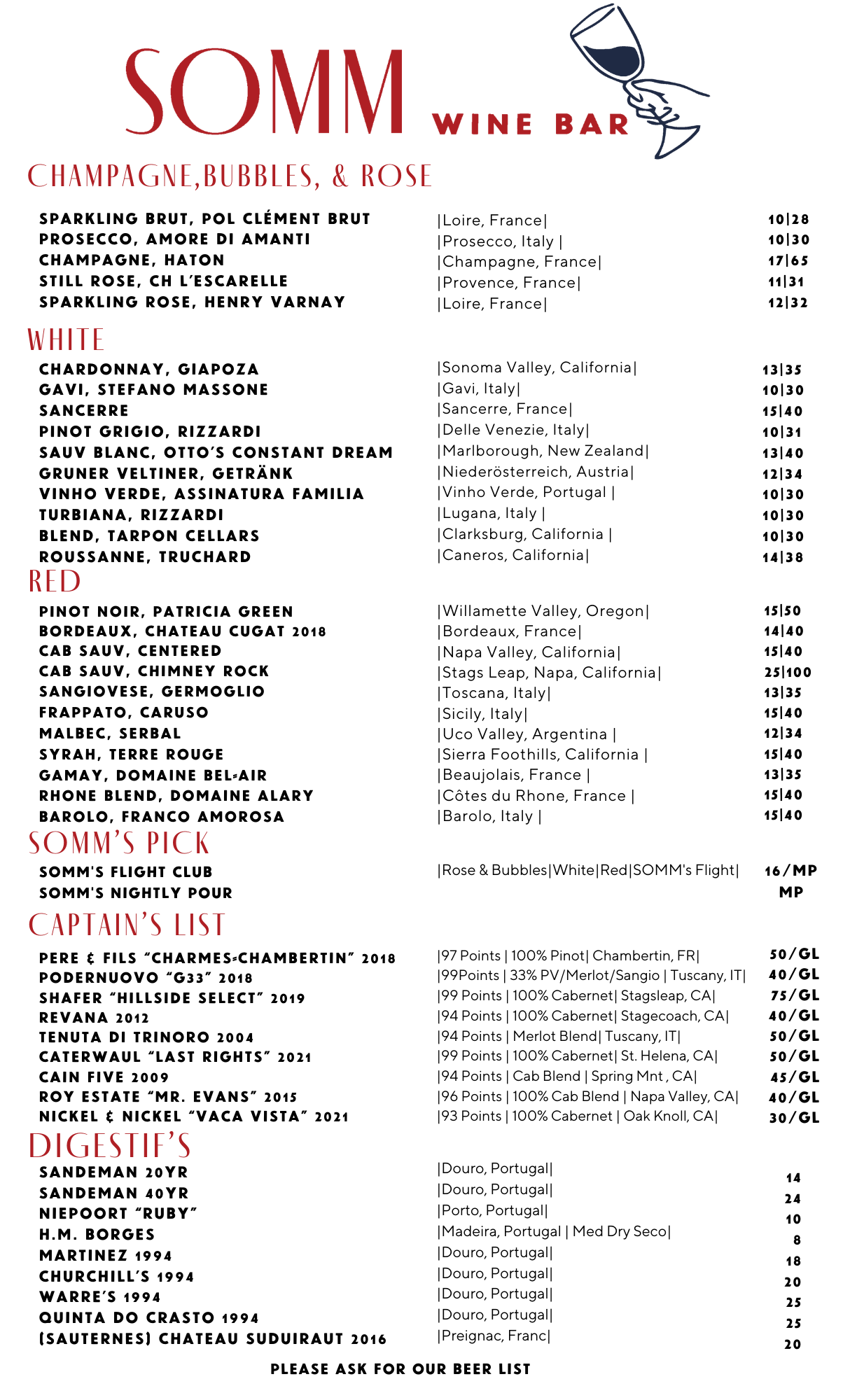 At Somm Wine Bar, we are proud to offer a wide variety of wines from all over the world. We carefully choose these wines to provide our valued customers with a chance to experience different flavors and learn about different winemaking techniques.